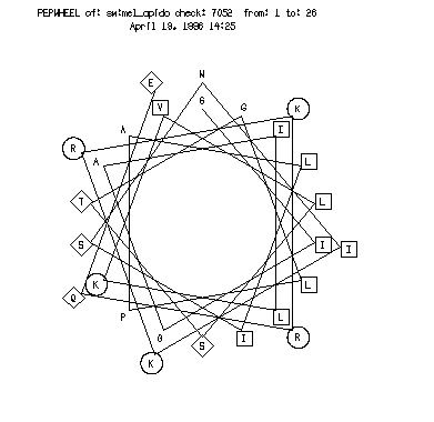 PepWheel s output displays the distribution of polar and apolar residues on opposite sides of the helix, meaning that, in a 'real' helix, polar and apolar residues should cluster together on different faces of the helical wheel. One can find amphiphilic helices even in randomly generated sequences. Flinta et al. (J. Mol. Biol. 168, 193-196 (1983)) showed that, in an 18 residue long helix, with 6 polar residues randomly distributed on the helical wheel, the probability that all 6 residues would cluster on one face is as large as 6%.
