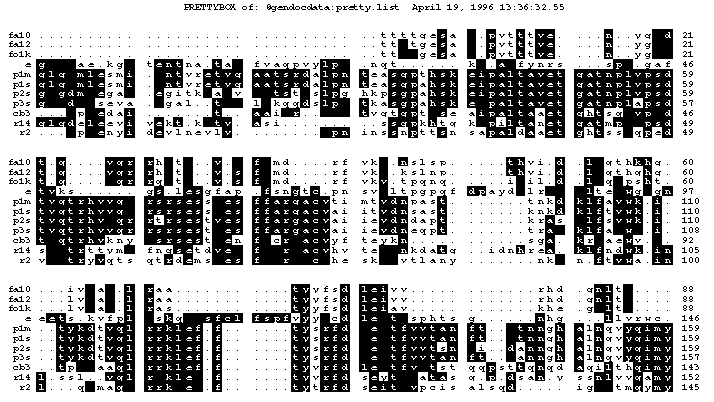 The original Pretty program was designed with the help of Ann Palmenberg of the UW Biophysics lab. The sequences in the example were aligned for Dr. Palmenberg's work, and were used in the GCG manual.