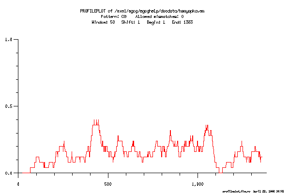 ProfilePlot produces a graphical report of the frequency of patterns in a protein or nucleotide sequence.